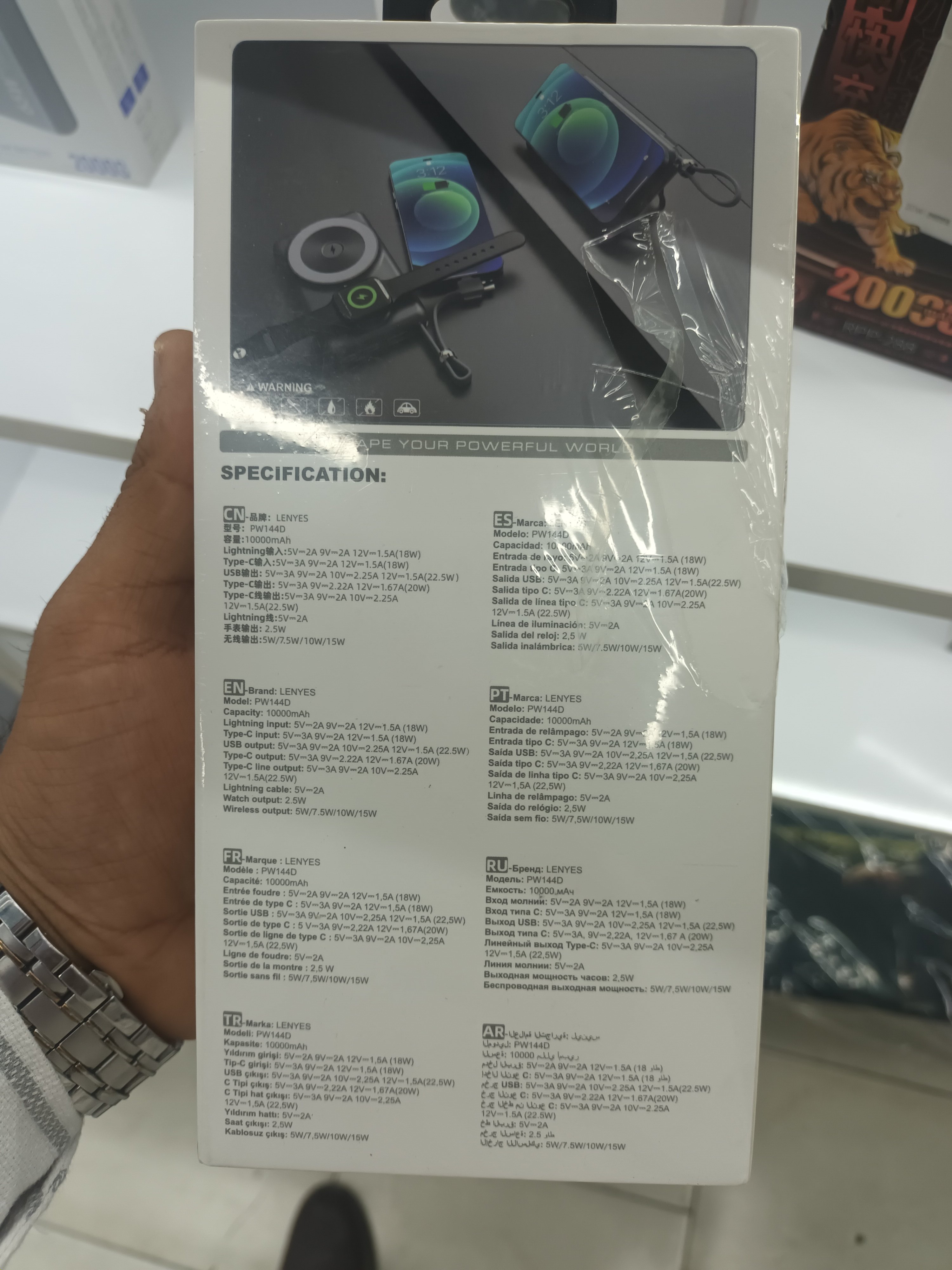 درگاهها: چند درگاه (تا 5 خروجی اعلامشده) — شامل خروجی Type-C و خروجی USB و ورودی Type-C / Micro یا Lightning (بسته به پکیج)